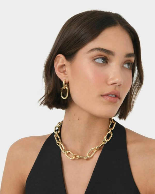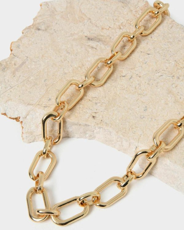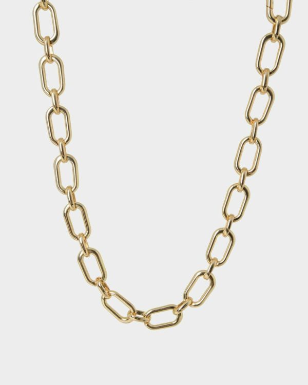 This bold and stylish Elvira Gold Plated Necklace features a chunky rectangular link chain. The oversized links create a striking and eye-catching statement piece.