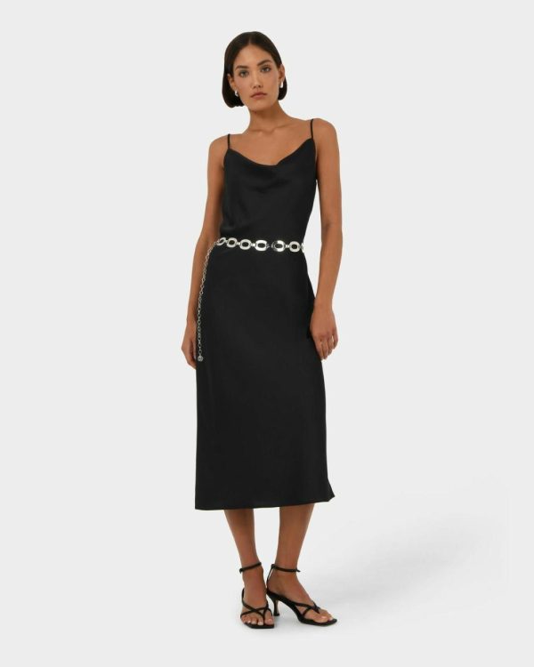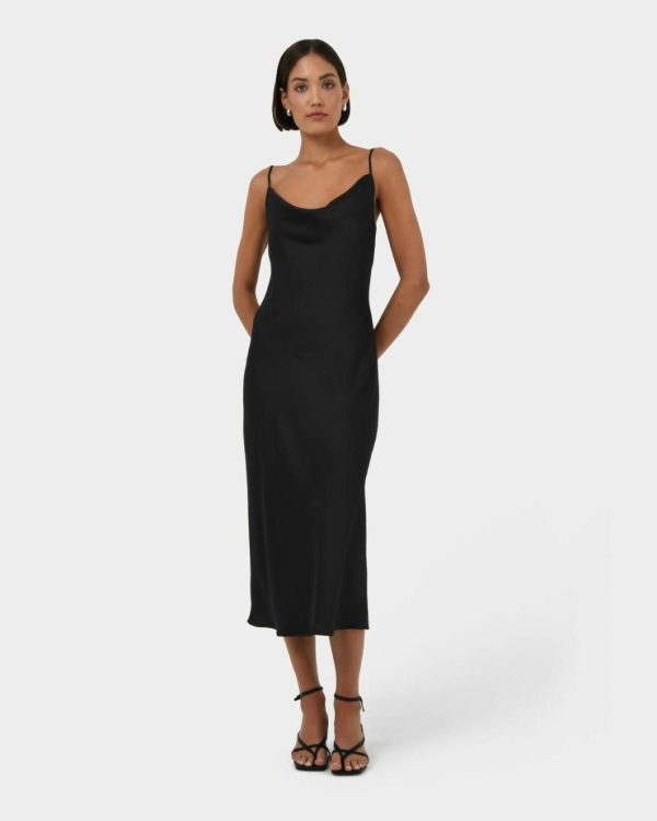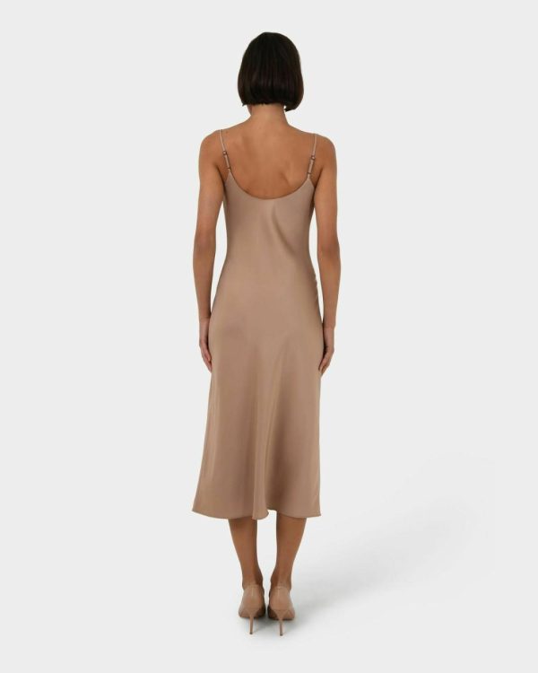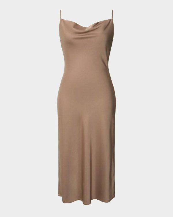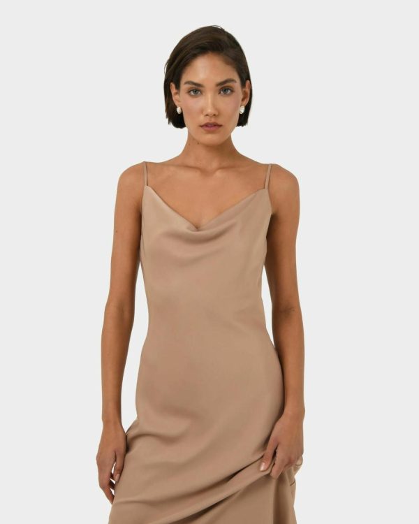 Forcast Joy Satin Cowl Neck Dress Warm Taupe/black | Women Midi Dresses