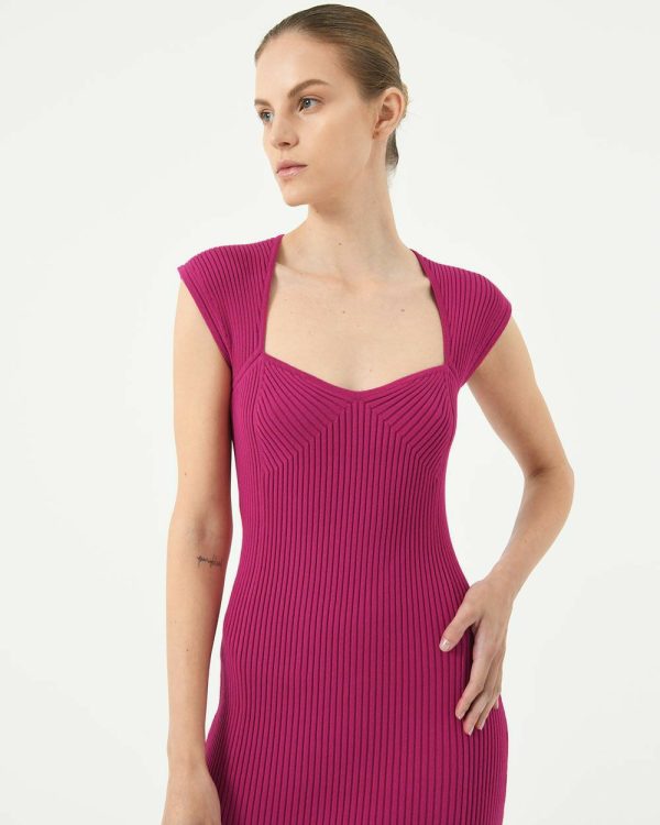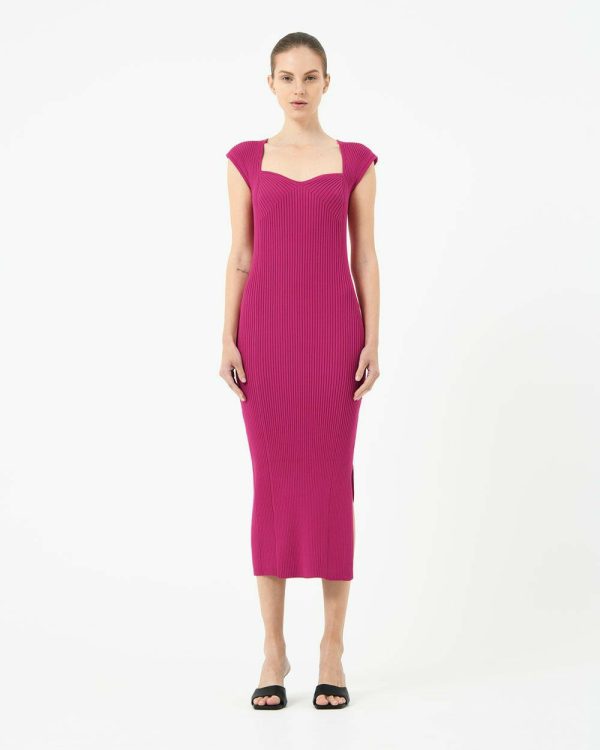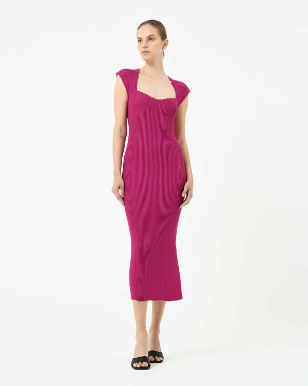 Forcast Mara Heart Neck Knit Dress Sangria | Women Midi Dresses