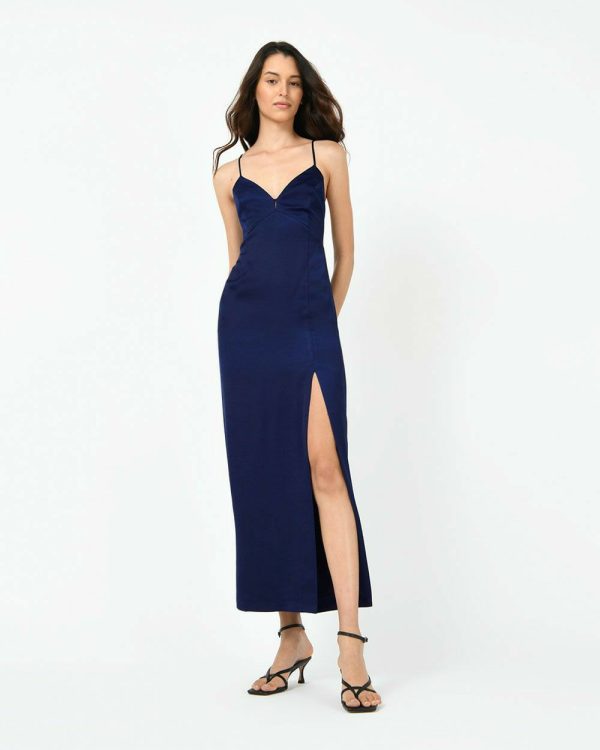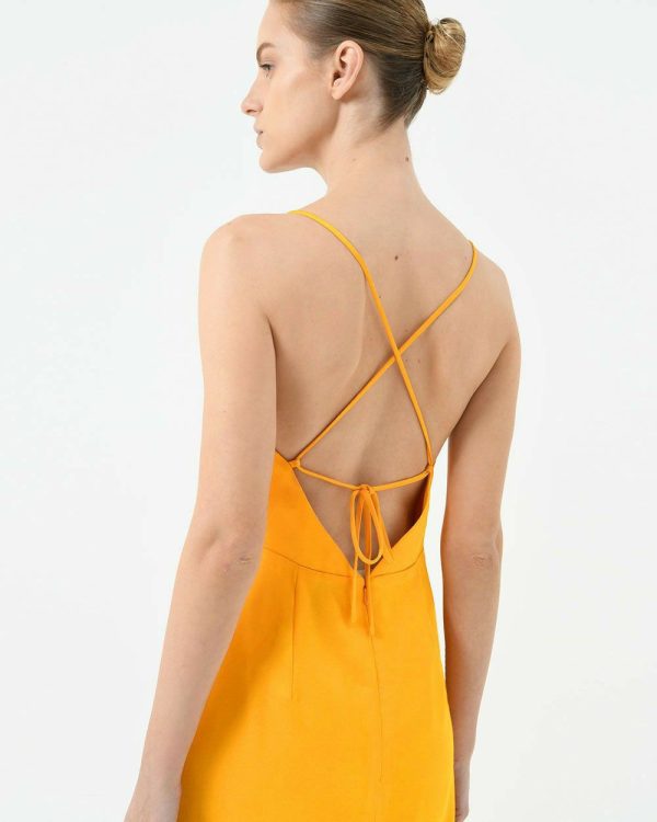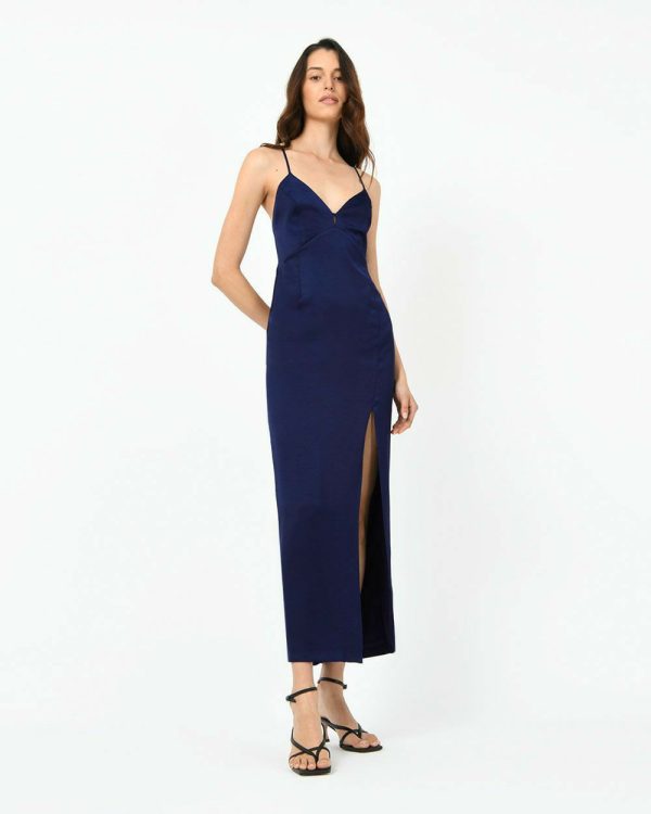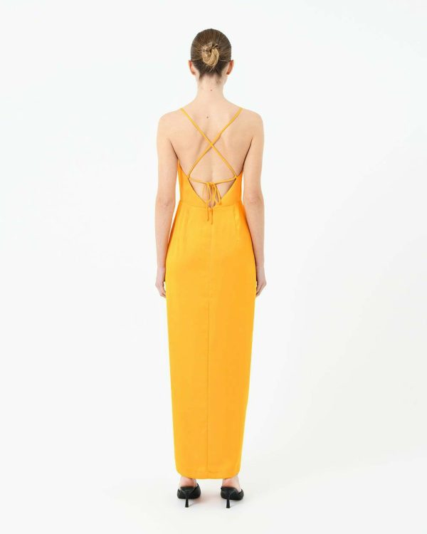 Forcast Muse Backless Maxi Dress Golden Yellow/navy | Women Maxi Dresses