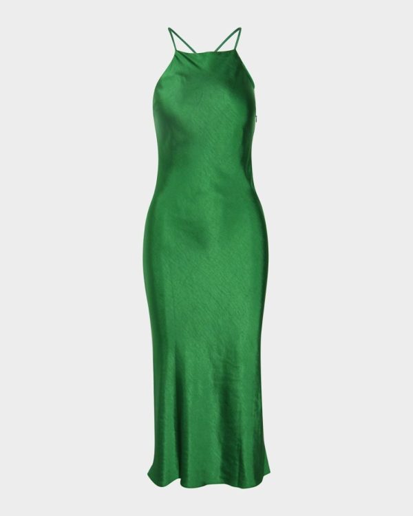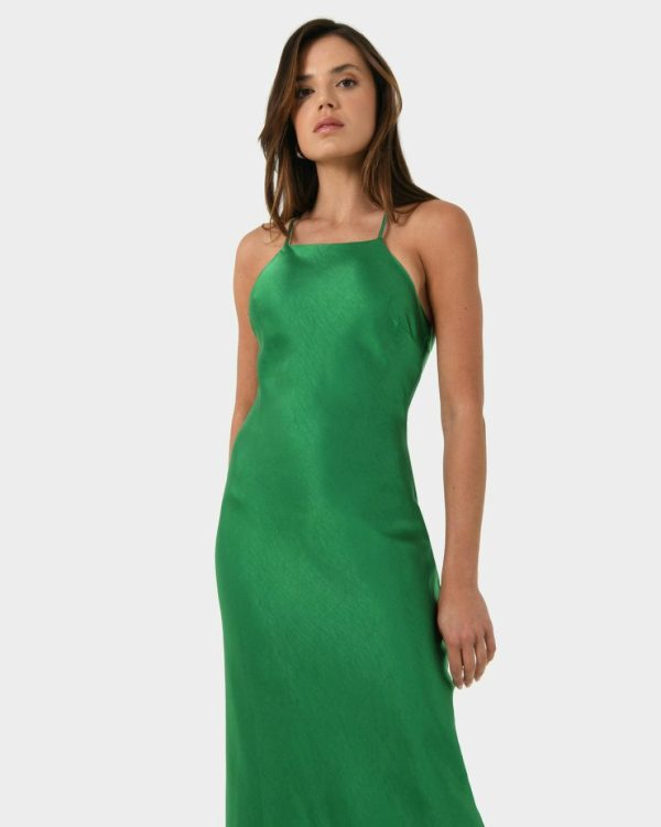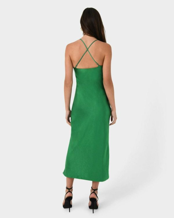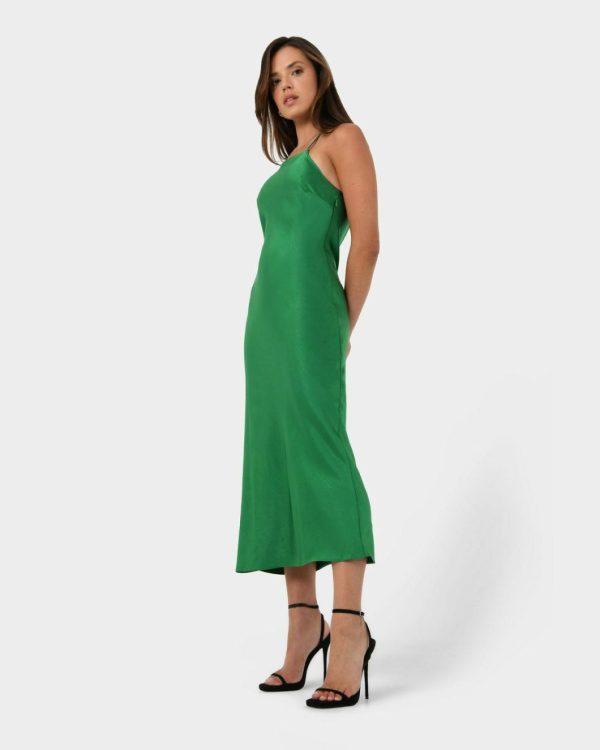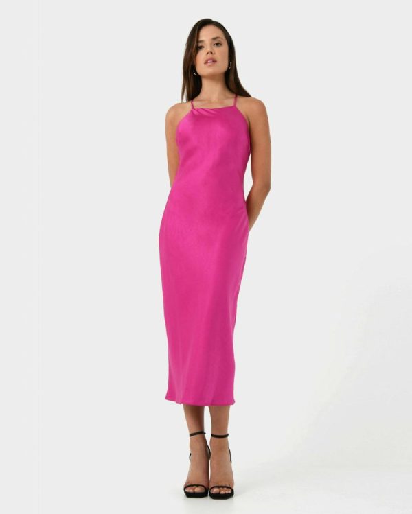 Forcast Samaya Satin Midi Dress Hot Pink/green | Women Midi Dresses