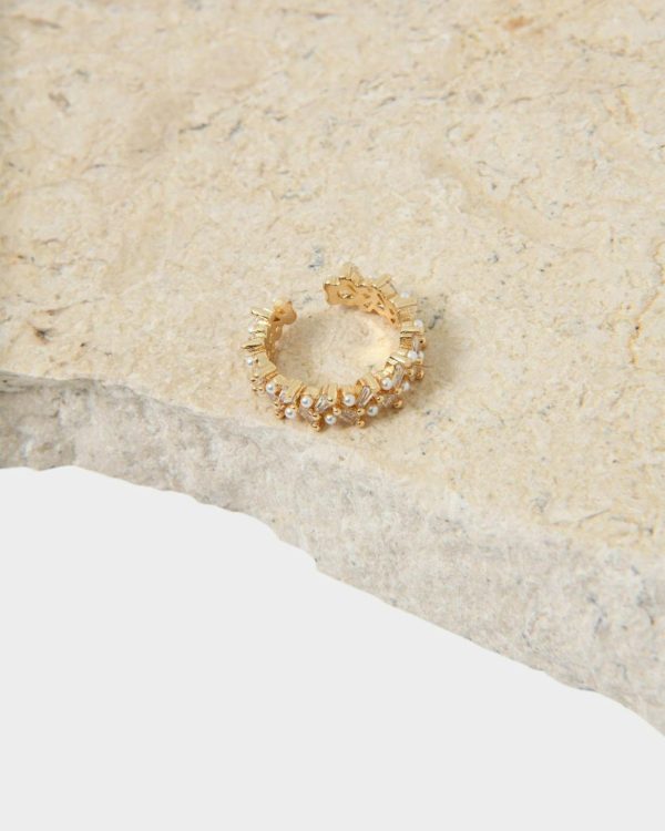 Material: Brass ring with zircon, faux pearls, 16k gold plated